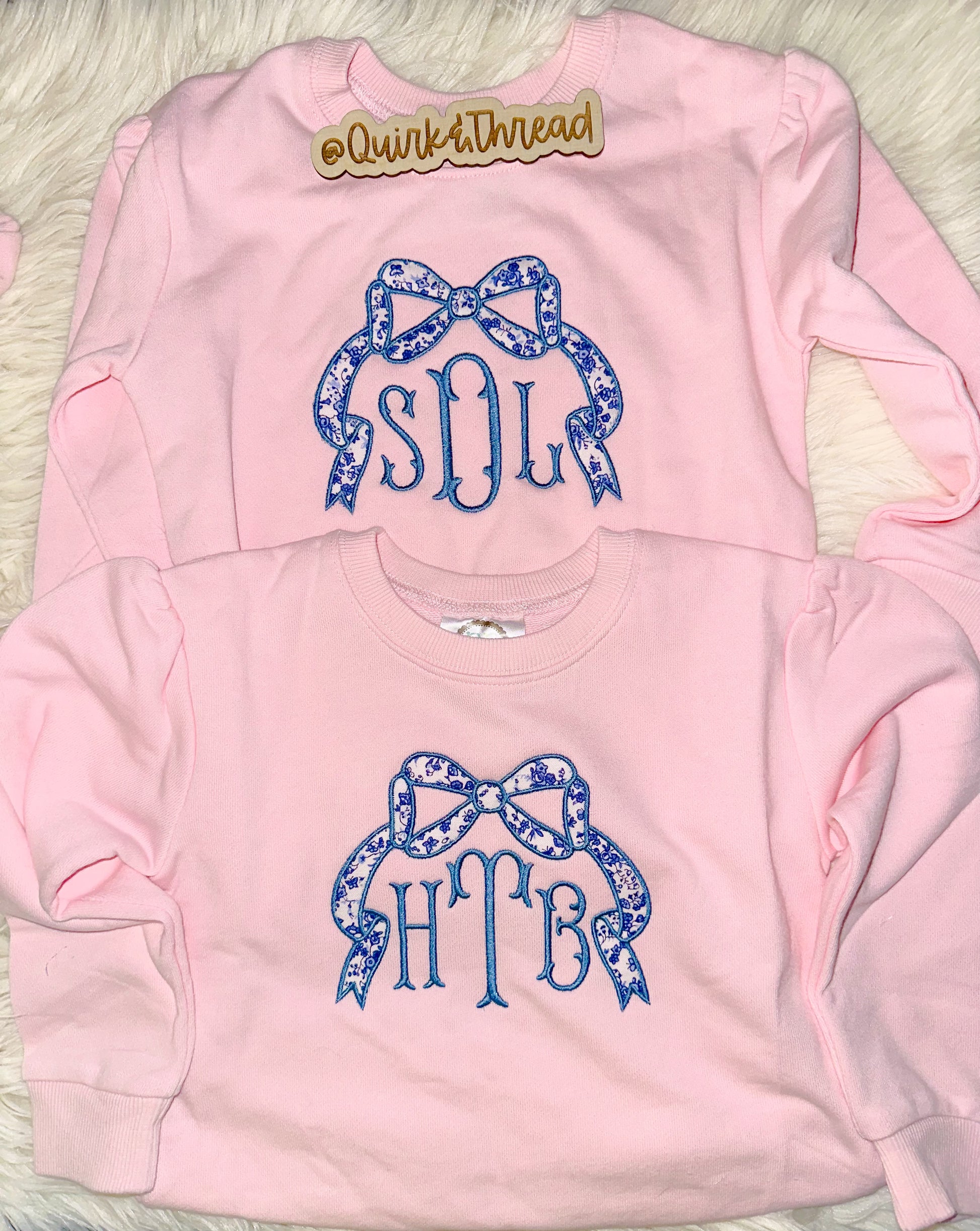 Elevate your little one’s style with our Monogram Bow Sweatshirt, crafted from 100% soft, breathable cotton for everyday comfort.Material: 100% cotton for all-day comfort