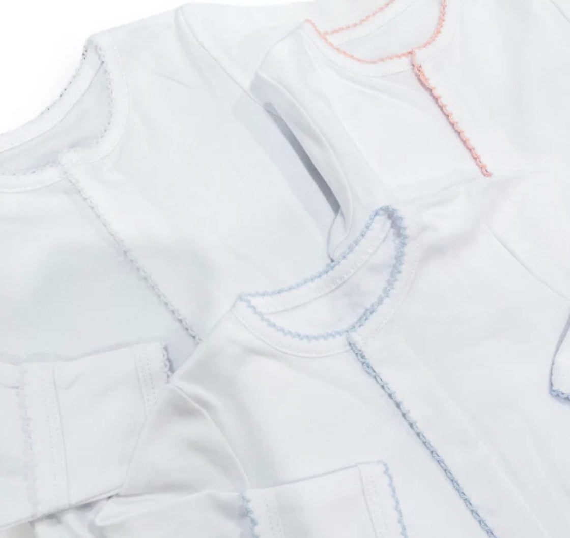 Picot Trim Baby Collection is crafted from 100% organic cotton, offering the ultimate in softness and comfort for your little one’s delicate skin. Each piece features dainty picot edging—adding a classic, heirloom-style touch to everyday essentials.